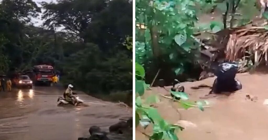 Pese a los llamados de prevención, circulan videos en redes sociales donde se observa a motociclistas a punto de ser arrastrados por la fuerza de las corrientes, una acción que pone en peligro sus vidas.Â